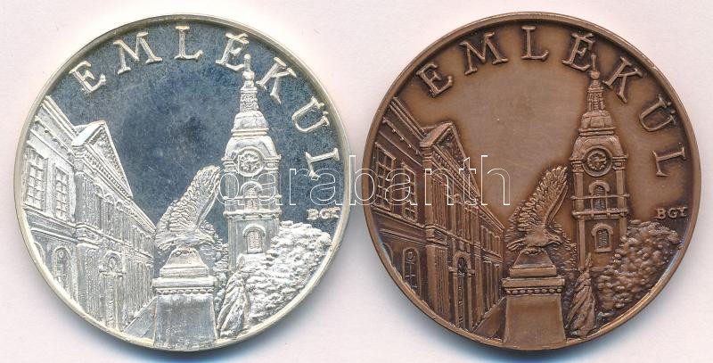 Bognár György (1944-) ~1990-2000. "Emlékül / Városi Jogú Nagyközségi Közös Tanács - Kunszentmiklós" kétoldalas Ag és bronz emlékérem pár (35,76g/0.835/42,5mm) T:UNC,AU (eredetileg PP)
