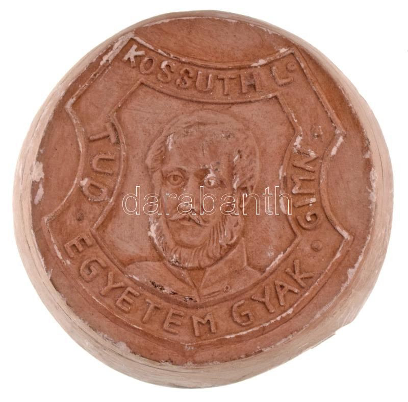 DN "Kossuth Lajos Tudományegyetem Gyakorló Gimnáziuma" egyoldalas gipsz minta(?), hátoldalán számozva (107mm) T:AU