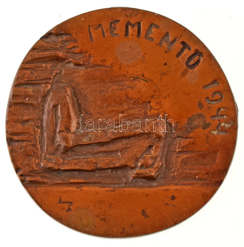 Beschreibung: DN "Memento 1944" egyoldalas, öntött bronz emlékérem (86mm) T:XF patina, szennyeződés