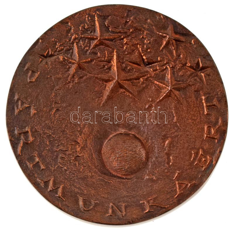 DN "Pártmunkáért" egyoldalas öntött bronz emlékérem eredeti, sérült tokban (74mm) T:XF patina