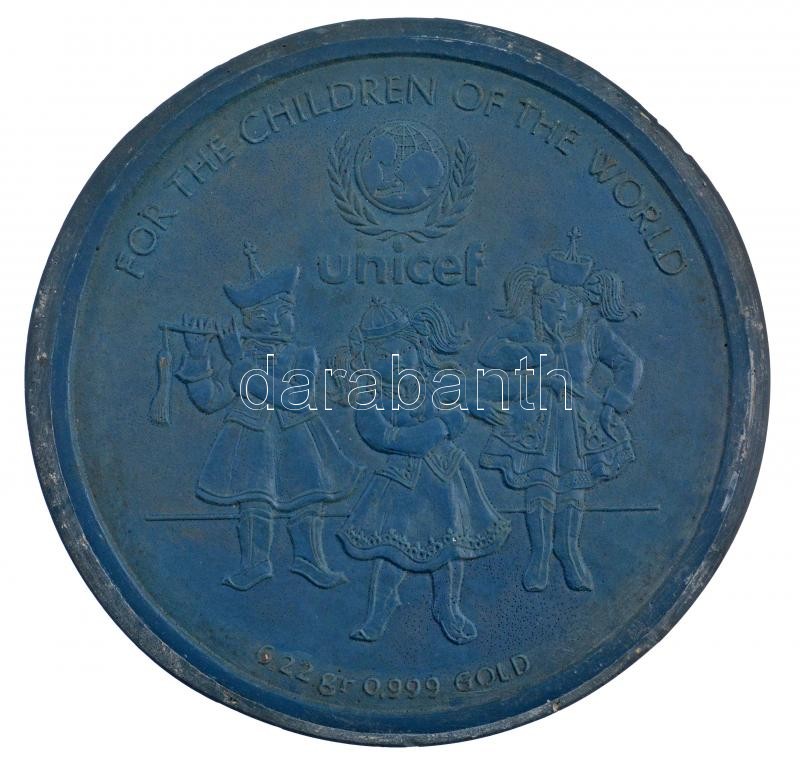 DN "UNICEF - A Világ gyermekeiért" gipszmásolatról készült egyoldalas műanyag öntvény (~202mm) T:2 ph ND "UNICEF - For the Children of the World" one-sided plastic casting made from a gypsum copy (~202mm) C:XF edge error