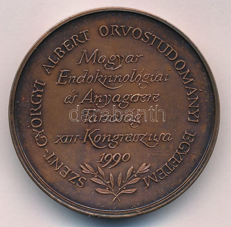 Fritz Mihály (1947-) 1990. "Szeged / Szent-Györgyi Albert Orvostudományi Egyetem - Magyar Endokrinológiai és Anyagcsere Társaság XIII. Kongresszusa 1990." kétoldalas piedfort bronz emlékérem (42,5mm) T:UNC