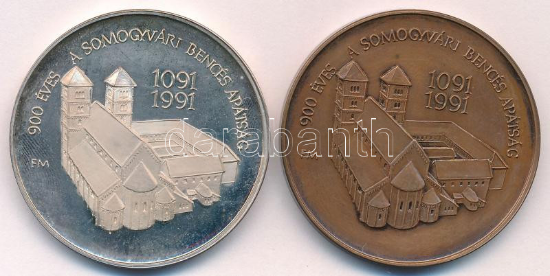 Fritz Mihály (1947-) 1991. "Szent László a magyarok lovagkirálya / 900 éves a somogyvári Bencés Apátság 1091-1991" Ag és bronz emlékérem pár (35,88g/0.835/42,5mm) T:UNC,AU (eredetileg PP)