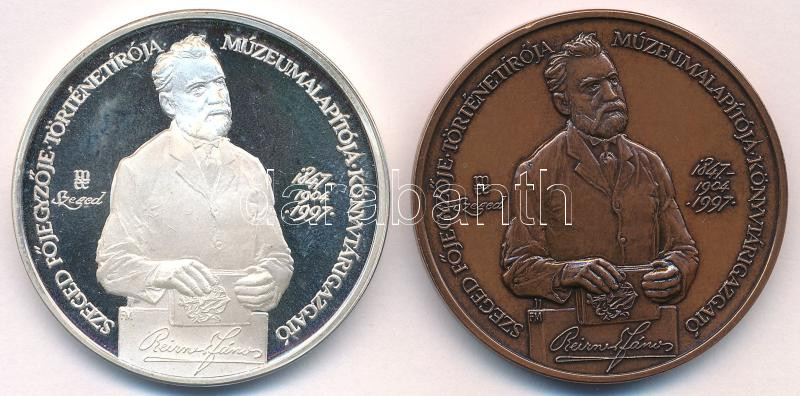 Fritz Mihály (1947-) 1997. "Reiner János - Szeged főjegyzője történetírója múzeumalapítója, könyvtárigazgató / Szeged" kétoldalas Ag és bronz emlékérem pár (34,18g/0.925/42,5mm) T:UNC,AU (eredetileg PP)