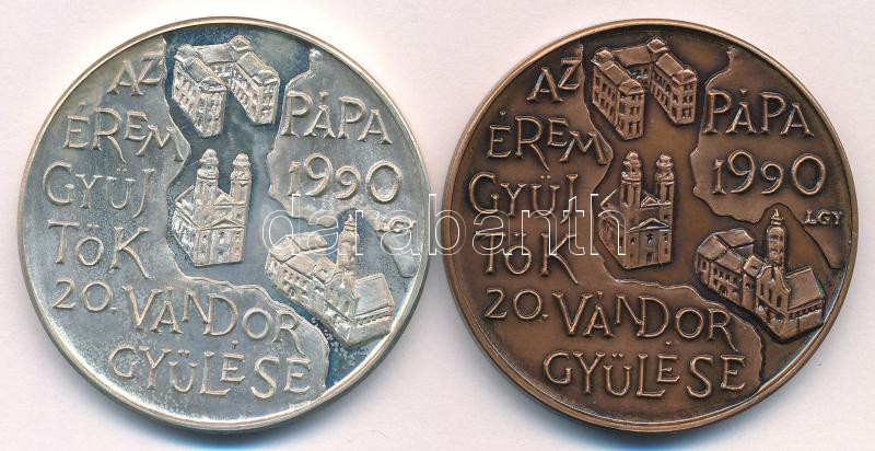 Lantos Györgyi (1953-) 1990. "MÉE Pápa / Éremgyűjtők 20. Vándorgyűlése" Ag és bronz emlékérem pár (36,52g/0.835/42,5mm) T:UNC,AU (eredetileg PP)