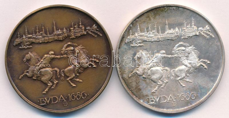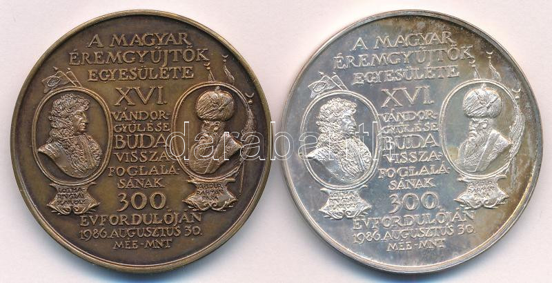 Lapis András (1942-) 1986. "MÉE XVI. Vándorgyűlése - Buda visszafoglalásának 300. évfordulóján / Buda 1686" Ag és bronz emlékérem pár (36,08g/0.835/42,5mm) T:UNC, AU (eredetileg PP) patina