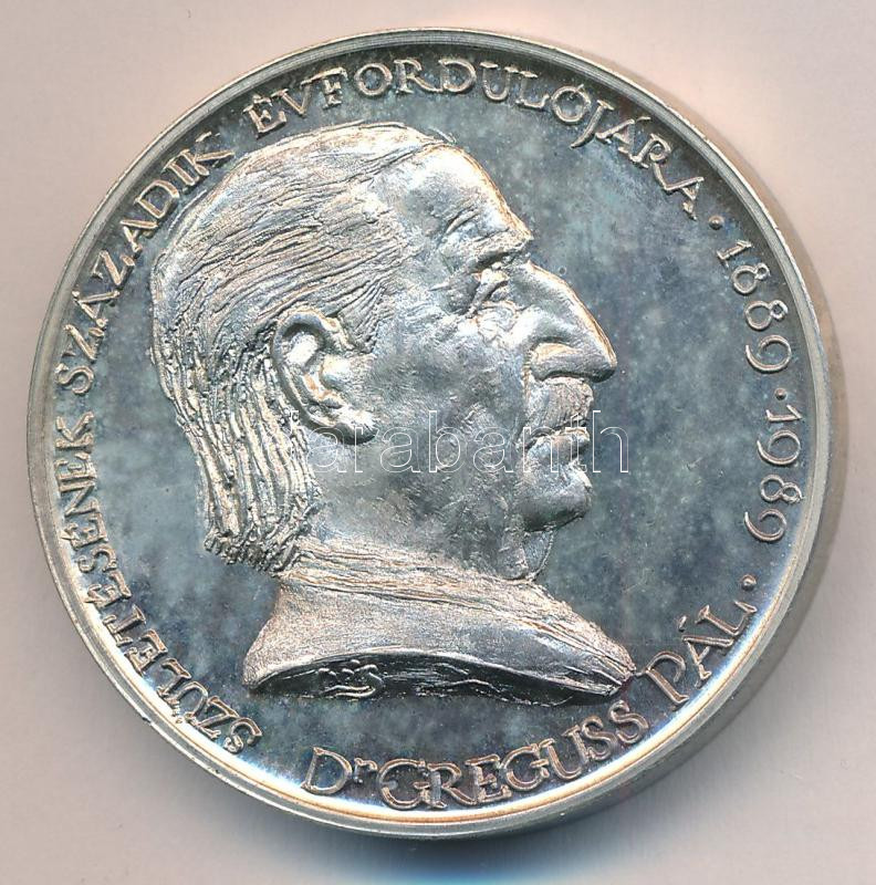 Lapis András (1942-) 1989. "Dr. Greguss Pál születésének századik évfordulója" permen jelzett Ag, piedfort emlékérem (71,2g/0.835/42,5mm) T:UNC,AU (eredetileg PP)