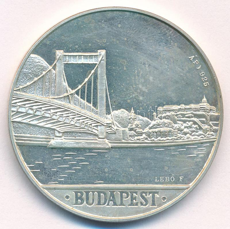 Lebó Ferenc (1960-) 1992. "Hungarian Telecommunications Company Limited / Budapest Lánchíd" Ag emlékérem (31,34g/0.925/42,5mm) T:UNC,AU (eredetileg PP) patina