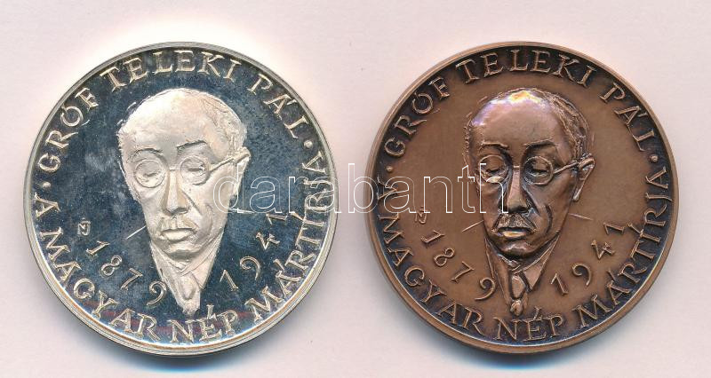 Nagy István János (1938-) 1991. "MÉE / Gróf Teleki Pál" Ag és bronz emlékérem pár (36,17g/0.835/42,5mm) T:UNC,AU (eredetileg PP) Adamo BP35