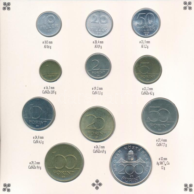 1993. 10f-200Ft (11xklf) forgalmi sor "Magyarország pénzérméi&quo... https://www.darabanth.com/de/457-Fernauktion/457.0/Numismatik/Ungarische-Kursmunzsatze~10/1993-10f-200Ft-11xklf-forgalmi-sor-Magyarorszag-penzermei-karton-disztokban-egy-lapos-ver~II3058894