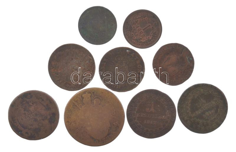 Beschreibung: 1763. Rézdénár "Mária Terézia / zárt korona" + 1763PH-KM Poltura Cu "Mária Terézia" + 176?P 1kr Cu "Mária Terézia" + 1800S 1kr Cu "I. Ferenc" + 1812S 1/2kr Cu "I. Ferenc" + 1812S 1kr Cu "I. Ferenc" (2db) + 1868KB 1kr "Angyalos címer" + 1885KB 1kr Cu "Középcímer" T:VF-VG