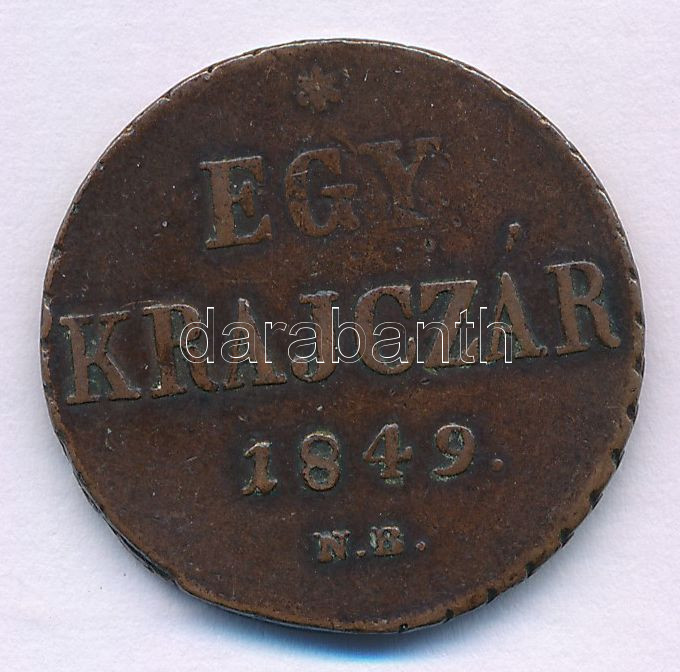 Adamo B1.1 https://www.darabanth.com/de/457-Fernauktion/457.0/Numismatik/Ungarische-Munzen-und-Munzen-mit-ungarischem-Munzzeichen~9/1849NB-1kr-Cu-TVF-Adamo-B11~II3060511
