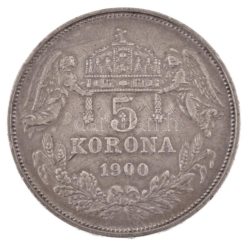 1900KB 5K Ag "Ferenc József" T:VF karc, ph. Adamo K7 https://www.darabanth.com/de/457-Fernauktion/457.0/Numismatik/Ungarische-Munzen-und-Munzen-mit-ungarischem-Munzzeichen~9/1900KB-5K-Ag-Ferenc-Jozsef-TVF-karc-ph-Adamo-K7~II3054508