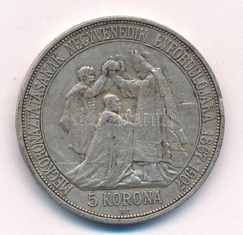 1907KB 5K Ag "Ferenc József megkoronázásának 40. évfordulója" T:XF,VF ph.