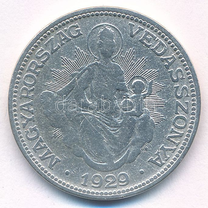 1929. 2P Ag "Madonna" T:F Adamo P7 https://www.darabanth.com/de/457-Fernauktion/457.0/Numismatik/Ungarische-Munzen-und-Munzen-mit-ungarischem-Munzzeichen~9/1929-2P-Ag-Madonna-TF-Adamo-P7~II3015758