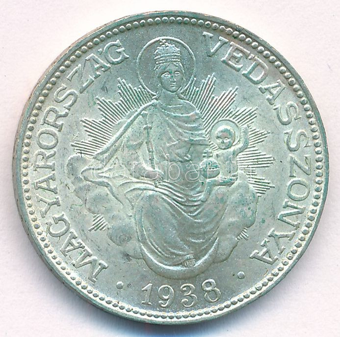 1938. 2P Ag "Madonna" T:AU patina https://www.darabanth.com/de/457-Fernauktion/457.0/Numismatik/Ungarische-Munzen-und-Munzen-mit-ungarischem-Munzzeichen~9/1938-2P-Ag-Madonna-TAU-patina~II3020469