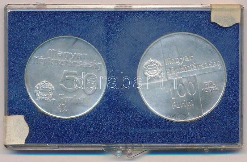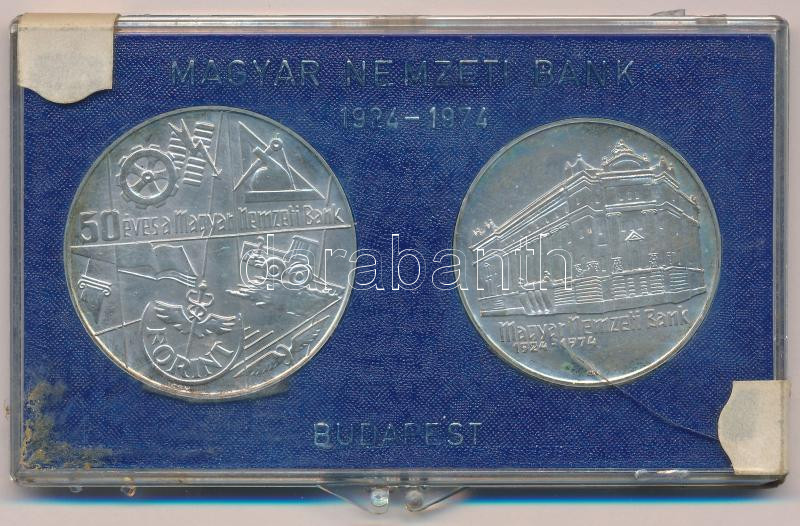 1974. 50Ft Ag "50 éves a Magyar Nemzeti Bank" + 100Ft Ag "50 éves a Magyar Nemzeti Bank" eredeti sérült "MNB" műanyag tokban T:BU patina