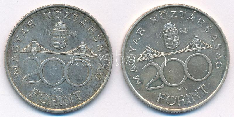 1994. 200Ft Ag "Deák" (2x) T:AU,XF patina