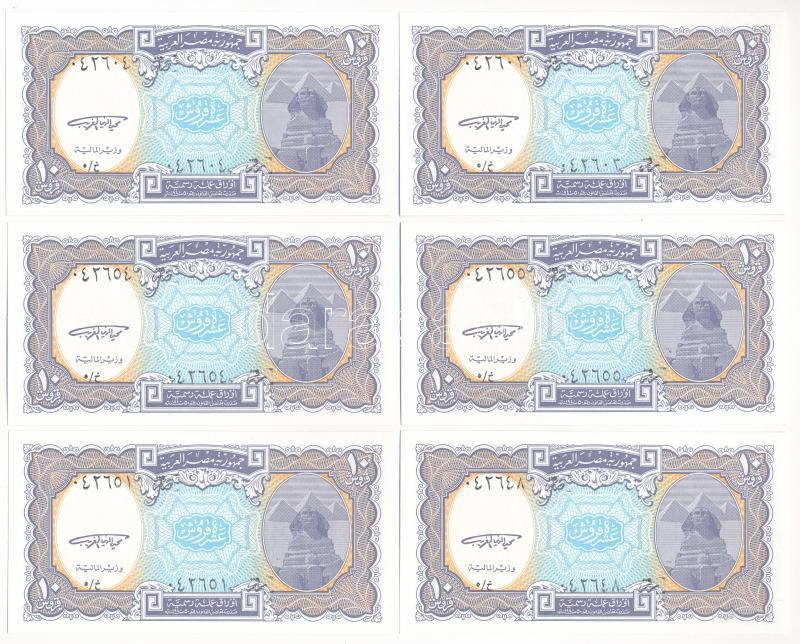 Egypt 1998. 10 Piastres (6x) with two consecutive pairs C:UNC