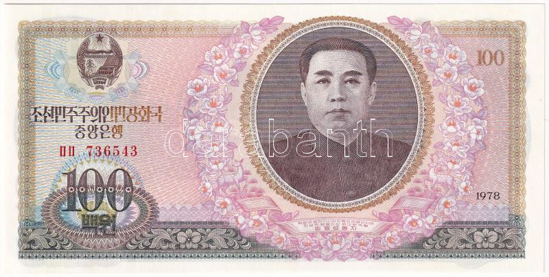 Krause P... https://www.darabanth.com/de/457-Fernauktion/457.0/Numismatik/Weltweit-Banknoten~15/Eszak-Korea-1978-100W-TAU--North-Korea-1978-100-Won-CAU-Krause-P2322~II2999552