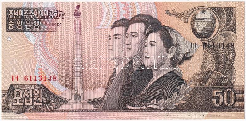 Észak-Korea 1992. 50W T:I- North Korea 1992. 50 Won C:AU Krause P#42 https://www.darabanth.com/de/457-Fernauktion/457.0/Numismatik/Weltweit-Banknoten~15/Eszak-Korea-1992-50W-TI-North-Korea-1992-50-Won-CAU-Krause-P2342~II2999553