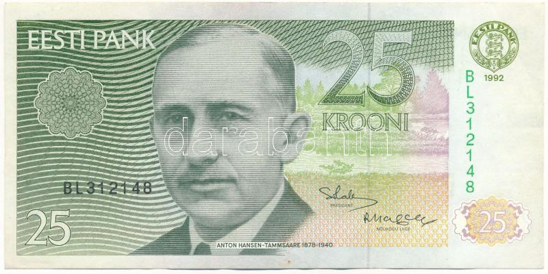 Estonia 1992. 25 Krooni C:F fine ... https://www.darabanth.com/de/457-Fernauktion/457.0/Numismatik/Weltweit-Banknoten~15/Esztorszag-1992-25K-TF-szep-papir-Estonia-1992-25-Krooni-CF-fine-paper-Krause-P2373~II3052620