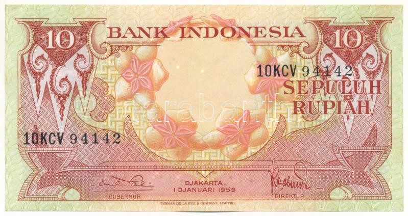 Indonesia 195... https://www.darabanth.com/de/457-Fernauktion/457.0/Numismatik/Weltweit-Banknoten~15/Indonezia-1959-10R-10KCV-94142-TAU--Indonesia-1959-10-Rupiah-10KCV-94142-CAU--Krause-P236~II2896471