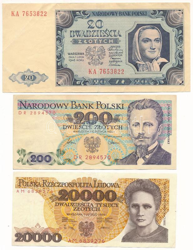 Beschreibung: Lengyelország 1948. 20Zl + 1986. 200Zl + 1989. 20.000Zl T:F