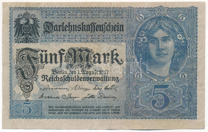 Krause ... https://www.darabanth.com/de/457-Fernauktion/457.0/Numismatik/Weltweit-Banknoten~15/Nemet-Birodalom-1917-5M-TF-German-Empire-1917-5-Mark-CF--Krause-56~II2898401