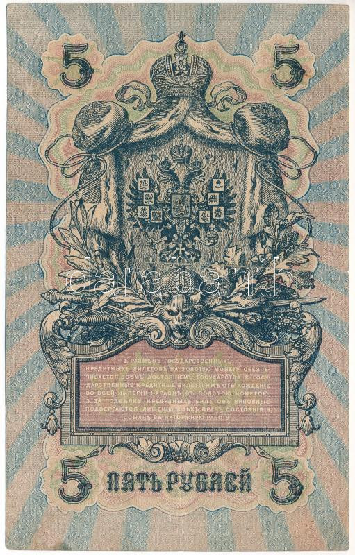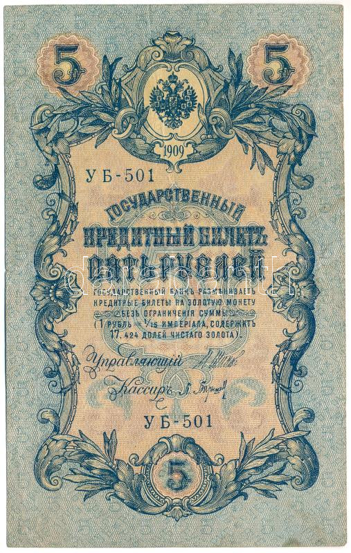 Orosz Birodalom 1912-1917. (1909) 5R Szign.: Shipov T:F Russian Empire... https://www.darabanth.com/de/457-Fernauktion/457.0/Numismatik/Weltweit-Banknoten~15/Orosz-Birodalom-1912-1917-1909-5R-Szign-Shipov-TF-Russian-Empire-1912-1917-1909-5-Rubles-Si~II2958186