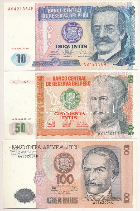 Peru 1987. 10 Intis + 20 Intis + 50 Intis C:UNC,AU