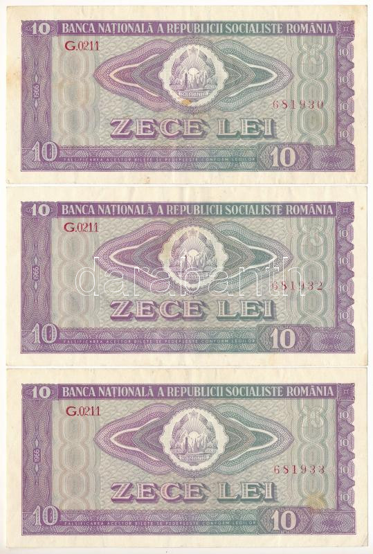 Románia 1966. 10L (3x) sorszámkövetők és egyugrású sorszámmal T:F Roma... https://www.darabanth.com/de/457-Fernauktion/457.0/Numismatik/Weltweit-Banknoten~15/Romania-1966-10L-3x-sorszamkovetok-es-egyugrasu-sorszammal-TF-Romania-1966-10-Lei-2x-~II2995647