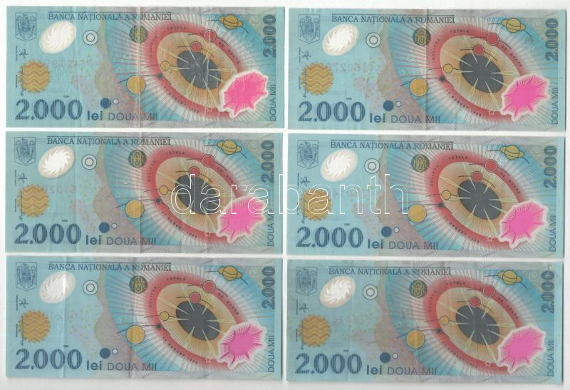 Románia 1999. 2000L (6x) "Napfogyatkozás" T:F Romania 1999. ... https://www.darabanth.com/de/457-Fernauktion/457.0/Numismatik/Weltweit-Banknoten~15/Romania-1999-2000L-6x-Napfogyatkozas-TF-Romania-1999-2000-Lei-6x-Solar-eclipse-CF-Krau~II3020584