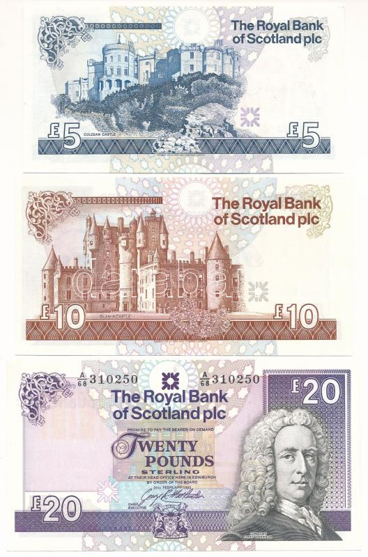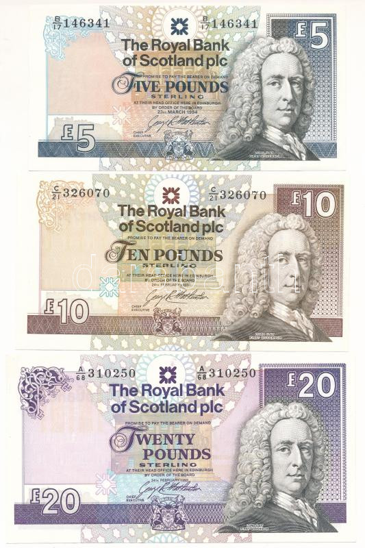 Skócia 1993. 10P "Royal Bank of Scotland" + 1993. 20P "Royal Bank of Scotland" + 1994. 5P "Royal Bank of Scotland" T:AU,XF Scotland 1993. 10 Pounds "Royal Bank of Scotland" + 1993. 20 Pounds "Royal Bank of Scotland" + 1994. 5 Pounds "Royal Bank of Scotland" C:AU,XF Krause P#353a, P#354b, P#352b