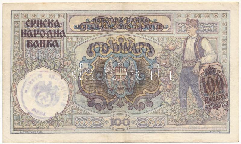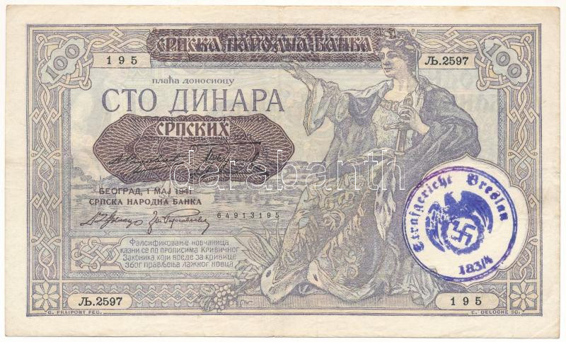 Szerbia / Német megszállás 1941. 100D hamis "Strafgericht Breslau... https://www.darabanth.com/de/457-Fernauktion/457.0/Numismatik/Weltweit-Banknoten~15/Szerbia-Nemet-megszallas-1941-100D-hamis-Strafgericht-Breslau-1834-belyegzessel-TF-Serb~II3059766