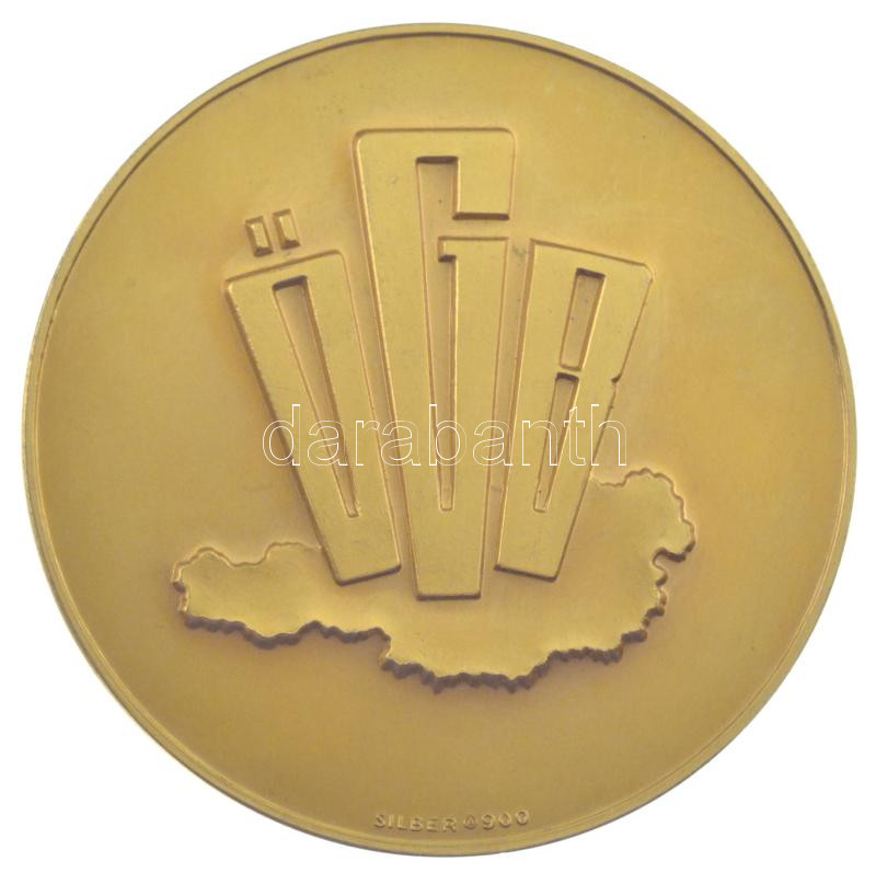 Austria ~2000. "ÖGB (Austrian Trade Union Federation) / For 60 years of union membership" gilt, hallmarked Ag commorative medallion (49,25g/0.900/50mm) C:AU