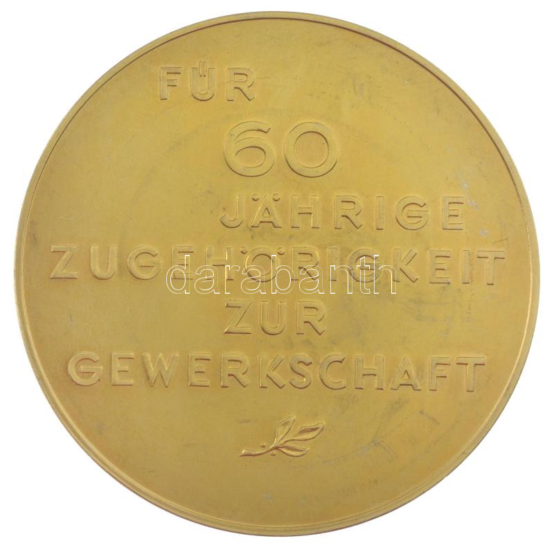 Ausztria ~2000. "ÖGB (Osztrák Szakszervezeti Szövetség) / 60 éves szakszervezeti tagságért" aranyozott, jelzett Ag emlékérem (49,25g/0.900/50mm) T:AU