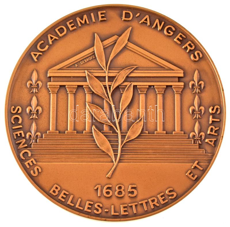 Franciaország DN "Angers-i Akadémia - Tudományok, irodalom és művészetek" egyoldalas bronz emlékérem eredeti dísztokban (65mm) T:UNC France ND "Academy of Angers - Sciences, literature and arts" one-sided bronze commemorative medal in original decorative case (65mm) C:UNC