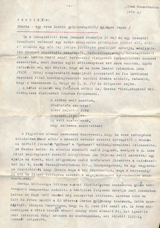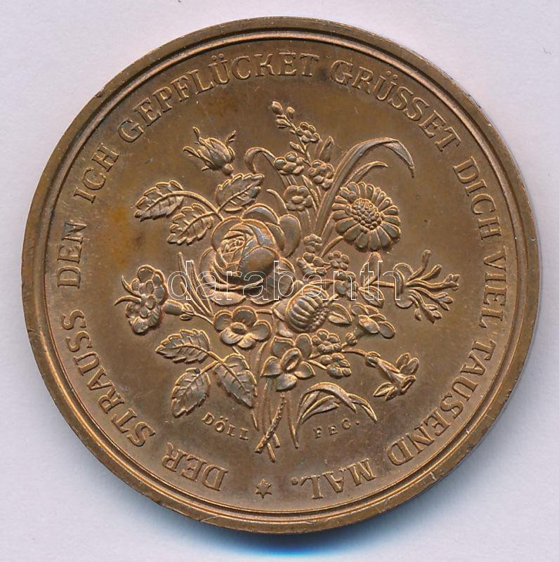 Németország DN "A csokor, amit szedtem, köszöntsön ezerszer / Charis" bronz replika emlékérem tokban, magyar nyelvű, írógéppel készült leírással. Szign.: Carl Friedrich Voigt (38mm) T:UNC Germany ND "Der Strauss den ich gepflücket grüße dich viel tausendmal / Charis". bronze facsimile medal in case, with a typewritten description in Hungarian. Sign: Carl Friedrich Voigt (38mm) C:UNC