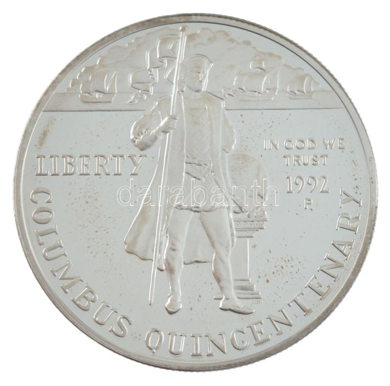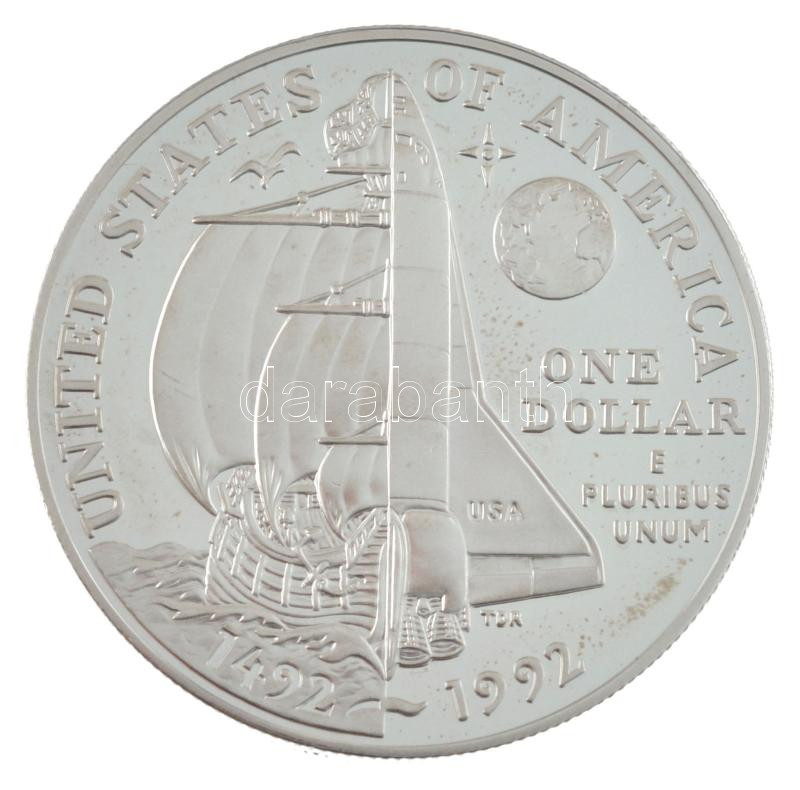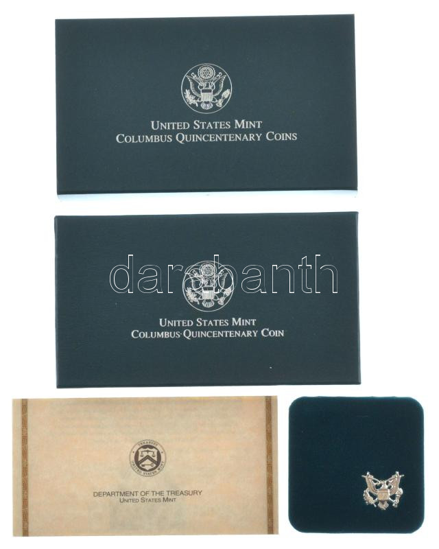 Amerikai Egyesült Államok 1992P 1$ Ag "Amerika felfedezésének 500. évfordulója" tanúsítvánnyal, dísztokban T:PP USA 1992P 1 Dollar Ag "Columbus quincentenary" with certificate in display case C:PP Krause KM#238