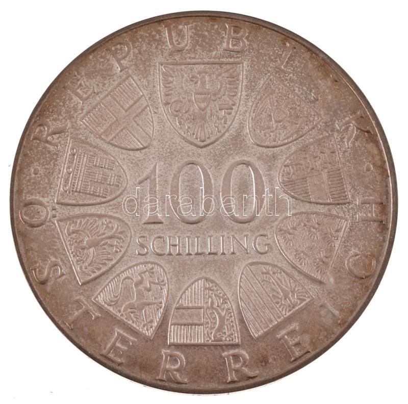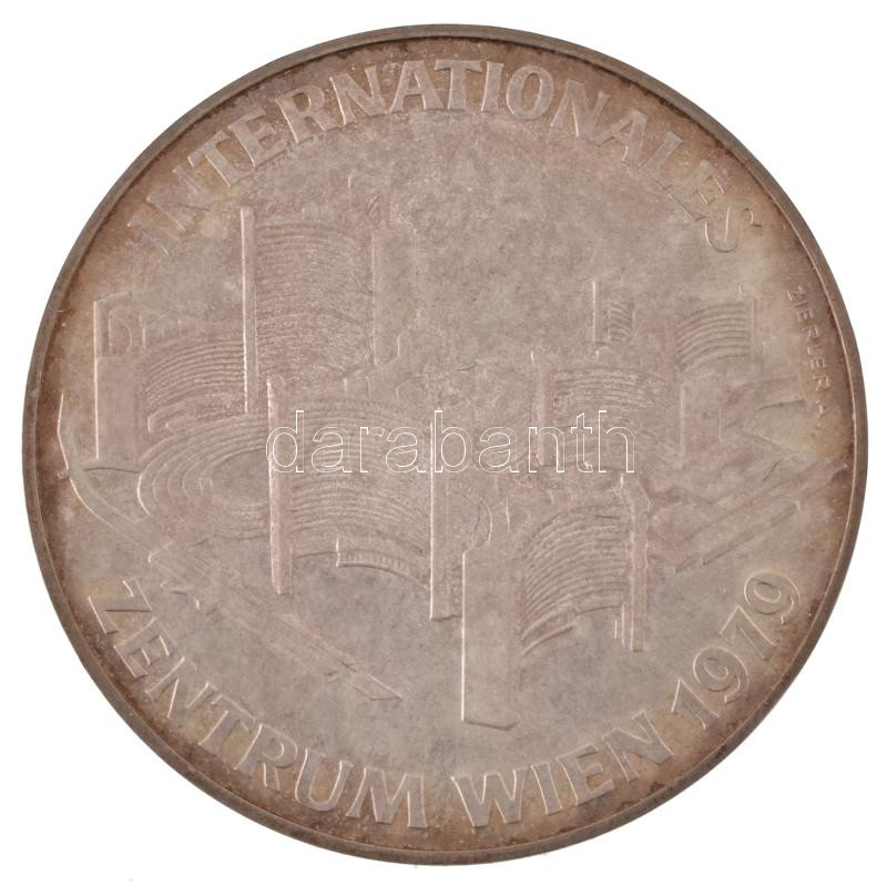 Ausztria 1979. 100Sch Ag "Bécsi Nemzetközi Központ" eredeti műbőr tokban T:AU (PP) patina