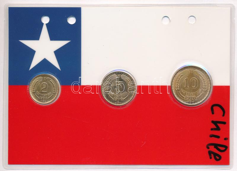 Chile 1970. 2c-10c aranyozva (3xklf) díszlapon T:UNC,AU Chile 1970. 2 Centimos - 10 Centimos gilt (3xdiff) on decorative cardboard sheet C:UNC,AU