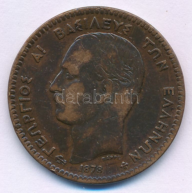 Görögország 1878K 10l Cu "I. György" T:F patina, ph Greece 1878K 10 Lepta Cu "George I" C:F patina, edge error Krause KM#55