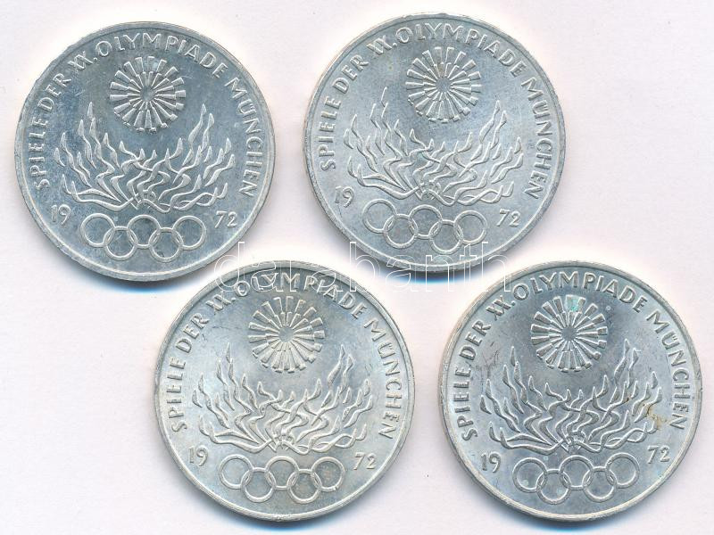 NSZK 1972. 10M Ag "MünchenI Olimpia / Olimpiai Láng" (4xklf verdejel) T:AU