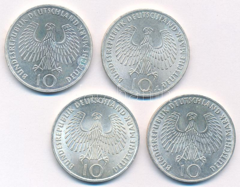 GFR 1972. 10 Mark Ag "Olympic Games Munich / Olympic Flame" (4xdiff mintmarks) C:AU