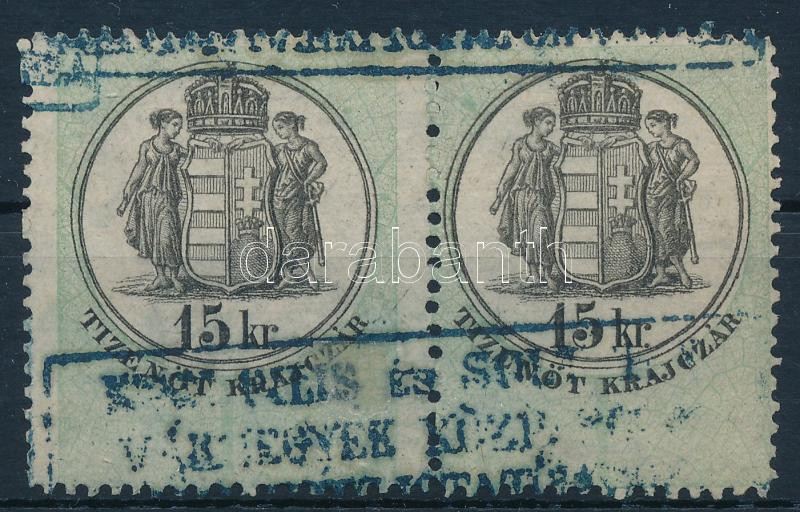 15kr okmánybélyeg pár, az egyik bélyeg nagyon szélesre, a másik kesken... https://www.darabanth.com/de/457-Fernauktion/457.0/Philatelie-und-Postgeschichte-Ungarn/Stempelmarken~500024/15kr-okmanybelyeg-par-az-egyik-belyeg-nagyon-szelesre-a-masik-keskenyre-fogazva~II3061402