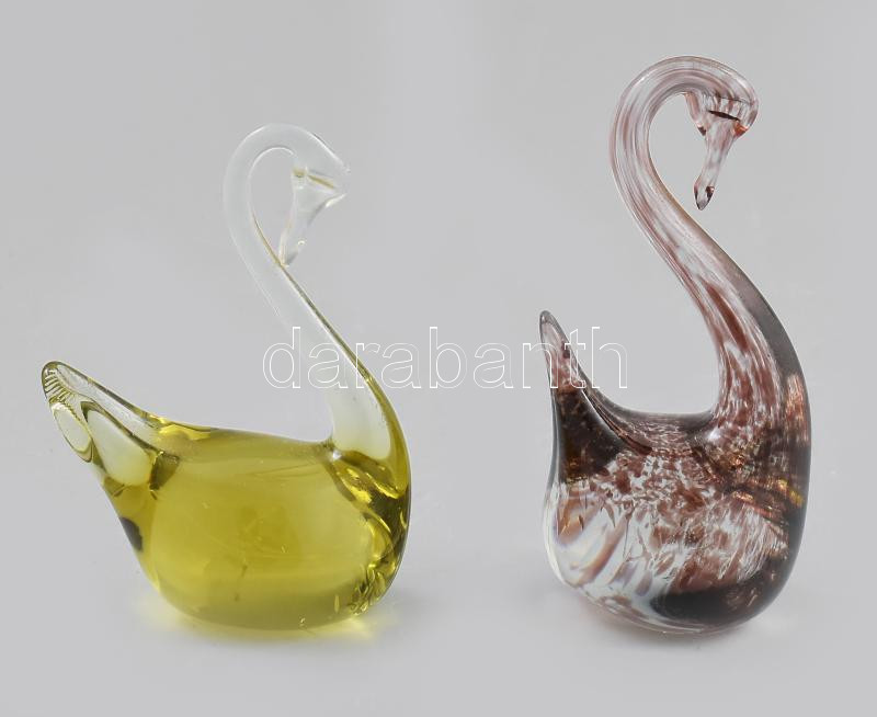 Beschreibung: 2 db kézzel készített hattyú figura.Anyagában színezett hutaüveg 8 cm