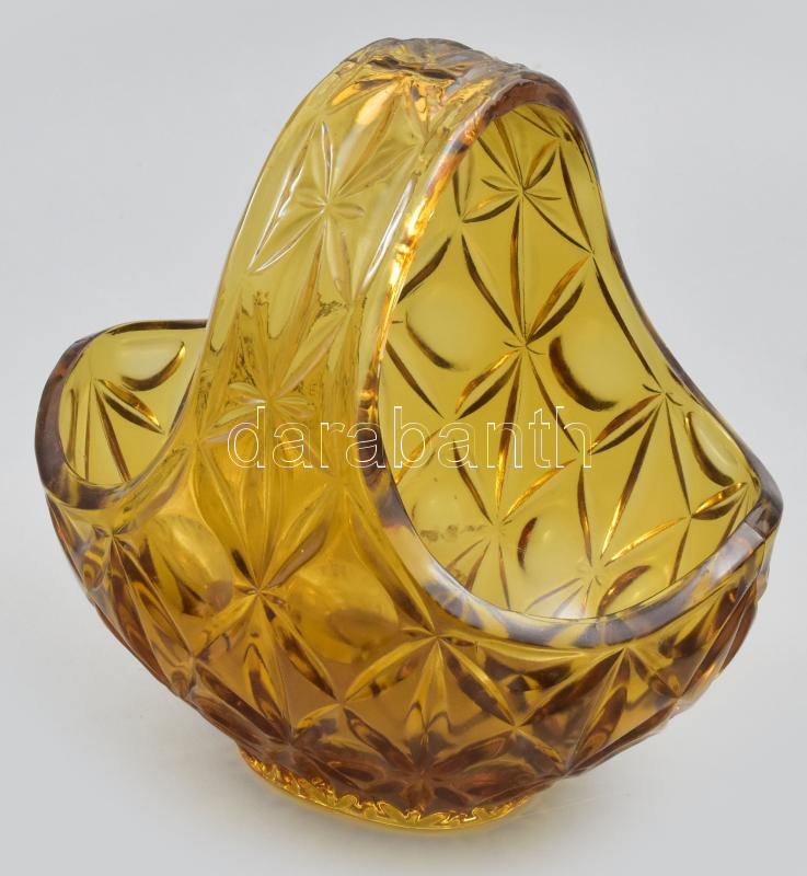 Beschreibung: Formába préselt borostyánszínű kosár üvegkínáló, pattogzással, m: 22 cm