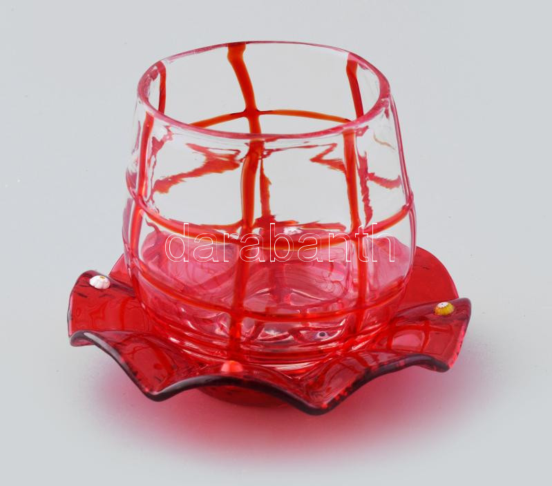 Beschreibung: Murano tál és váza anyagában színezett, kézi üveg váza m: 8,5 cm, tál d: 13 cm