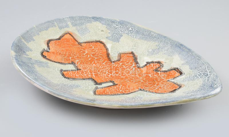 Beschreibung: Kerezsi Gyöngyi (1943- ): Ovális kínálótál. Jelzett, kis kopással, mázjavításokkal, 35,5x26,5 cm